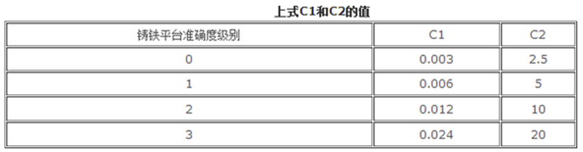 c1、c2--與平板準確度有關的系數 見下表